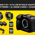 Canon C70 + EF-EOS R & 0.71 Adapters, 3 Batteries, 2 Cards, Handle