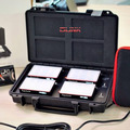 The included case holds the four MC fixtures and can be used to wirelessly charge the lights using the included power supply. The case also incorporates two 5 VDC USB power ports for charging mobile accessories.