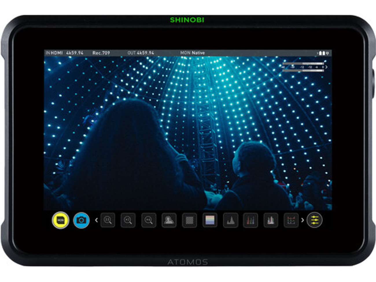 The touchscreen Shinobi 7 runs the latest AtomOS firmware that features a variety of onscreen analysis tools such as multi-scope views, exposure, framing, focus assist, waveform, RGB parade, and histogram tools. It also features an SDI card input to load custom 3D LUTs, and it supports SDR and HDR viewing. The AtomHDR display technology allows you to accurately monitor your log gamma footage without having to view flat, washed-out images or use a LUT to compress the dynamic range and color space. The monitor supports popular log formats from Sony, Canon, Panasonic, ARRI, RED, and JVC cameras.