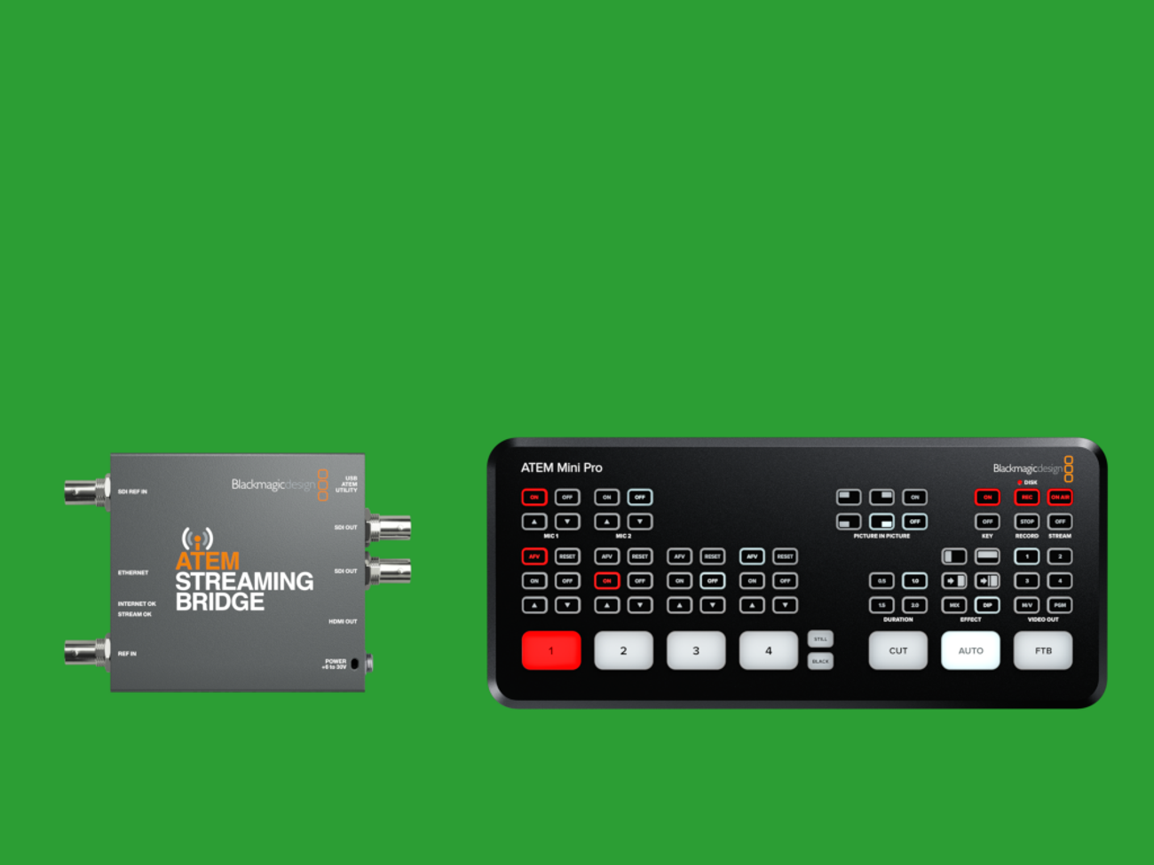 The ATEM Streaming Bridge is a video converter that lets customers receive an H.264 stream from any ATEM Mini Pro and convert it back to SDI and HDMI video. This means customers can send video to remote locations around their local Ethernet network, or via the internet globally. That's possible because it uses advanced H.264 codecs for higher quality at very low data rates. Imagine broadcasters and bloggers collaborating on shows and creating global networks of ATEM Mini Pro remote broadcast studios. Setup is easy as the ATEM software utility can create setup files that customers can email to remote ATEM Mini Pro studios. ATEM Streaming Bridge is the perfect way to use ATEM Mini Pro as a remote broadcast studio.