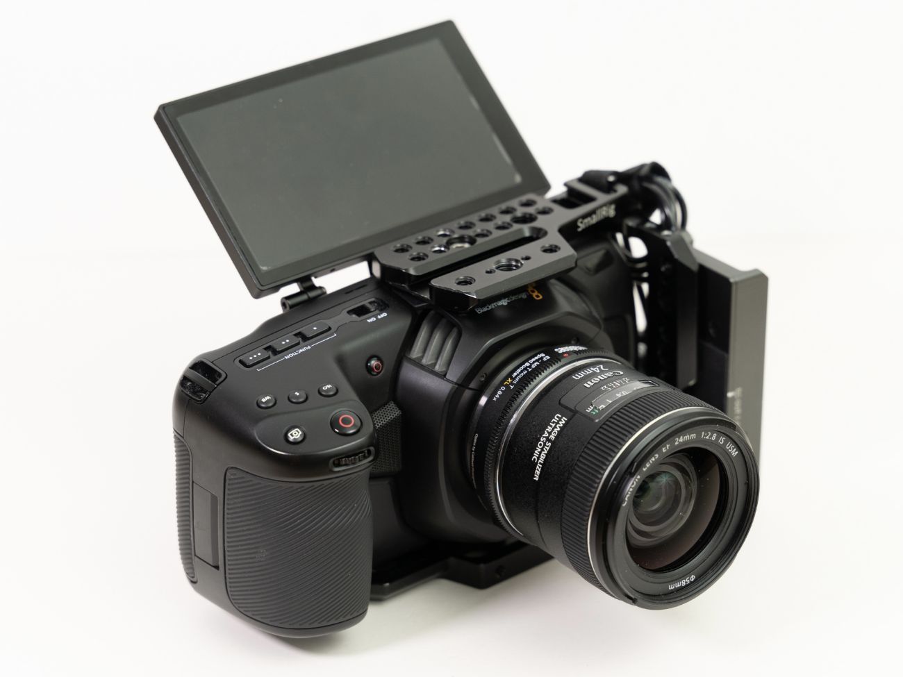 Blackmagic 4K Cam + Tilt LCD + Speedbooster .64 XL EF + Canon 24/35mm f2 IS | BMPCC
