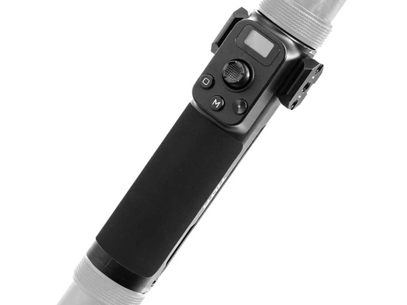 The RS 2/3 Remote Control Handle attaches to the right side of the Advanced Ring Grip and Dual Handle Power Supply Bracket to give you easy access to your gimbal’s settings as well as the record and photo functions of your camera.