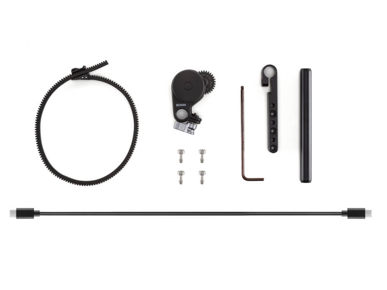 The DJI Ronin Focus Motor is used with the front dial on DJI RS 2/DJI RSC 2 to control focus, iris, and zoom