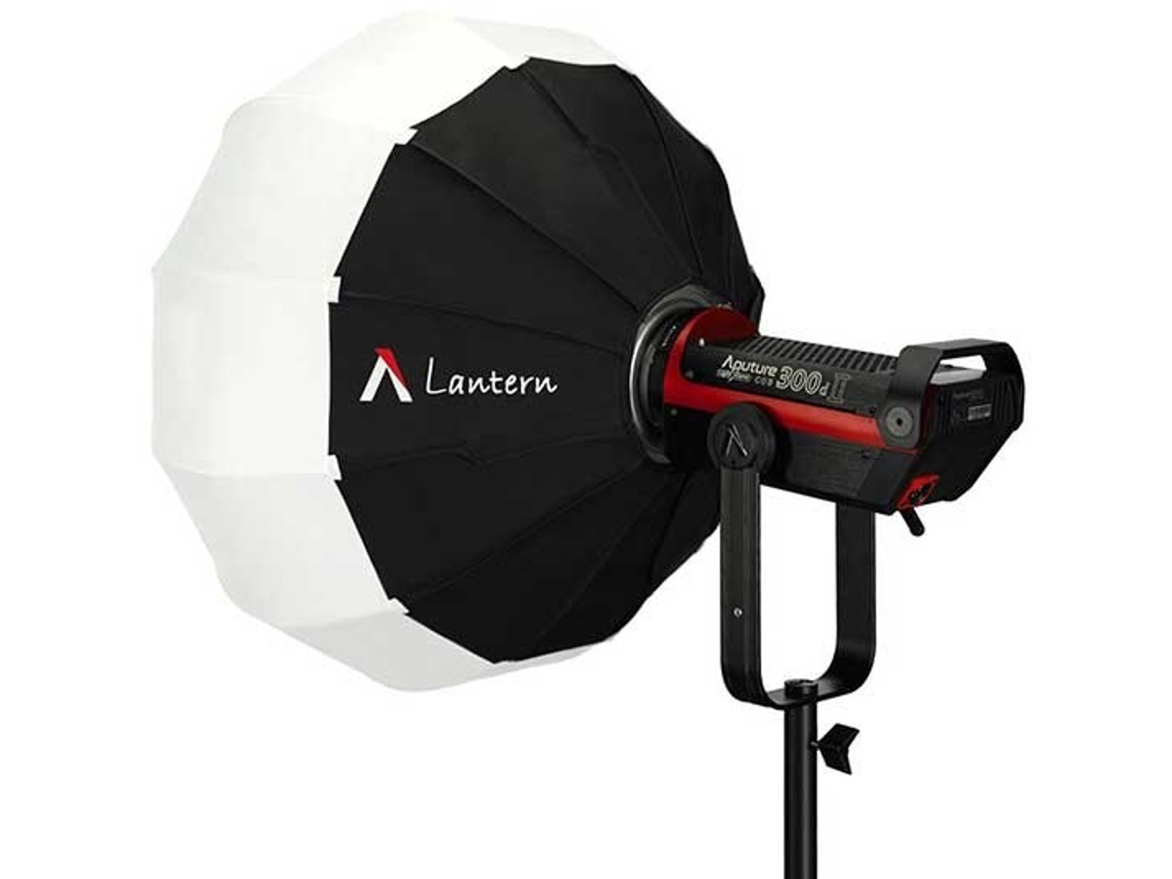 deal for use overhead or to raise the ambient illumination level, the 26" diameter Lantern Softbox from Aputure has the same omni-directional quality of light as the "China Balls" of yore but is built of durable materials and has accessories such as a skirt set to control the 270-degree beam spread. The Lantern has a Bowens mount that fits Aputure lights such as the 120d or 300d series, but it is also compatible with many other lights that use this popular mount.