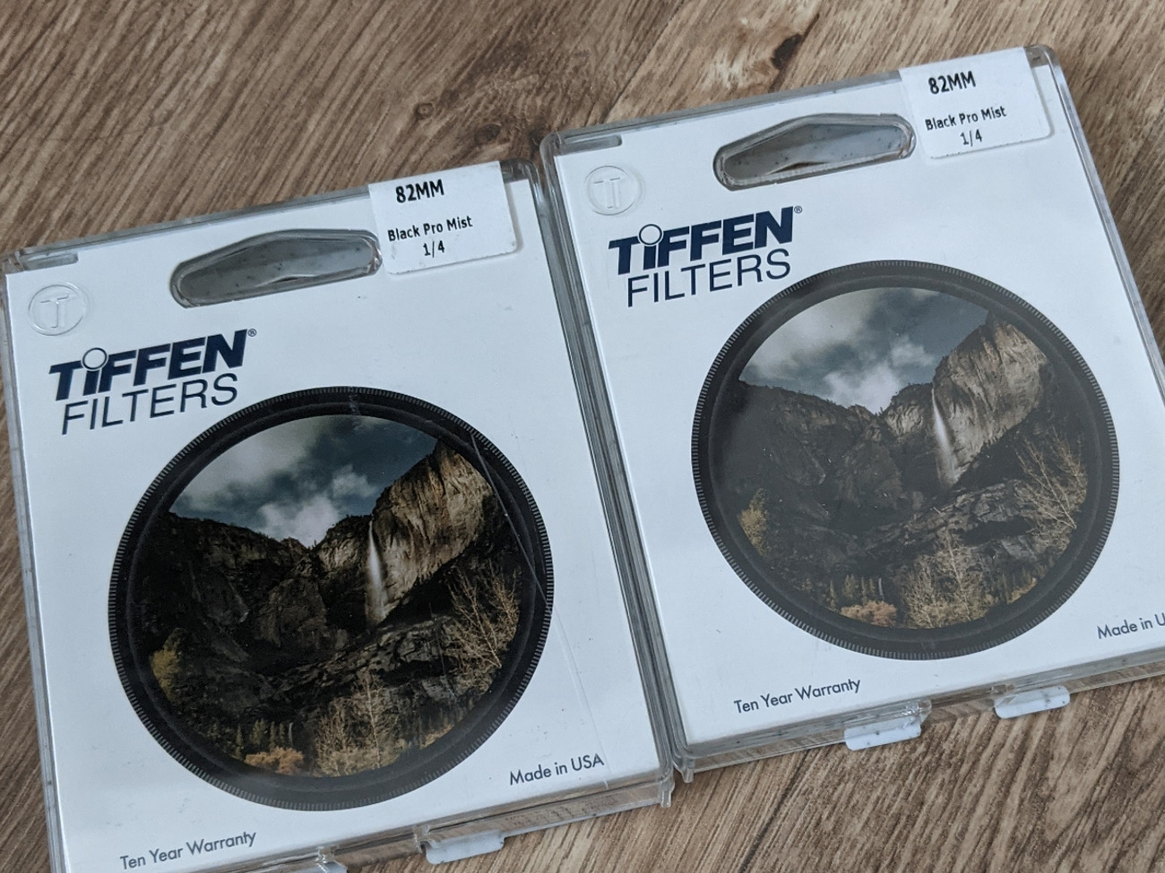 2x 1/4 Black pro mist Tiffen filter 82mm