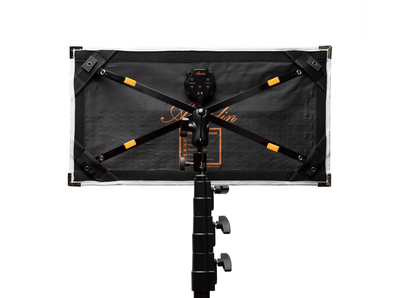 Lightweight RGB bicolour and effects ready wireless panel with softbox and V lock adapter.