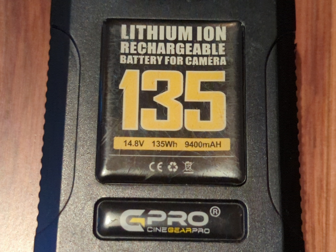 Cinegear pro mini V lock 135 Watts. Super small and compact for the power and with D tap and USB output.