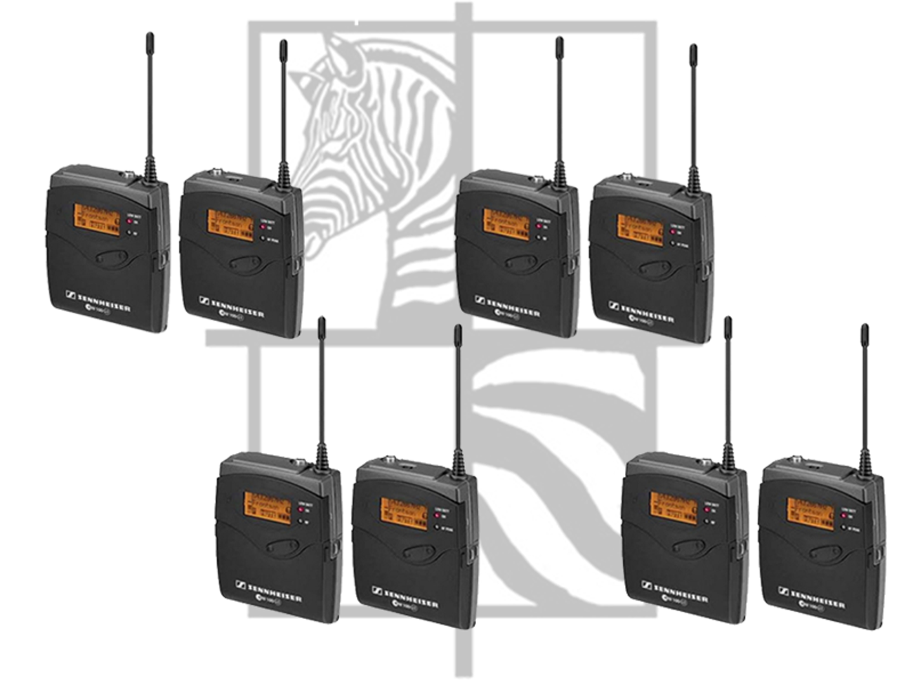4x Sennheiser G3 Lav Kits (Receiver and Transmitter, Lav, Mic clip, Pop shield, 3.5mm-XLR and 3.5mm to 3.5mm, Coldshoe mount)
