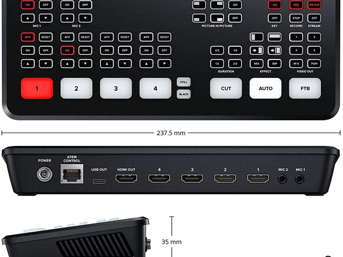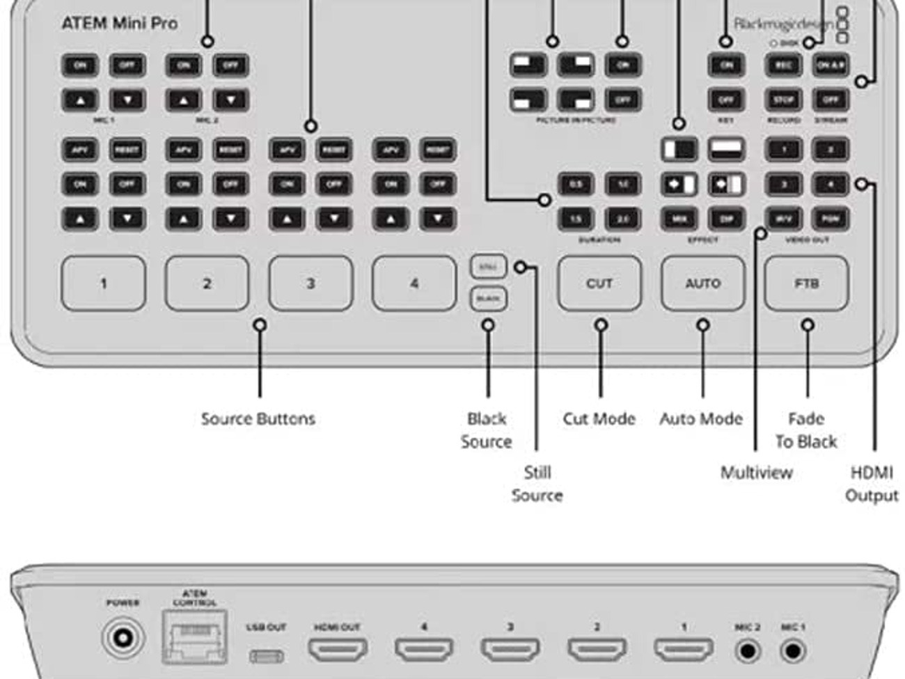 Blackmagic ATEM Mini PRO Camera Switcher (p/n BMD-SWATEMMINIBPR). Blackmagic Design today announced ATEM Mini Pro, a new low cost live production switcher with all the features of ATEM Mini but now with extra features for recording, streaming and monitoring. ATEM Mini Pro includes a new hardware streaming engine to allow direct streaming via its Ethernet connection to YouTube Live, Facebook and Twitch. There is also support for recording the stream direct to USB flash disks in H.264, plus support for recording to multiple disks for continuous recording. The new model also includes a multiview on the HDMI video output that allows all inputs to be monitored on a single monitor, as well as live status of recording, streaming and the audio mixer.