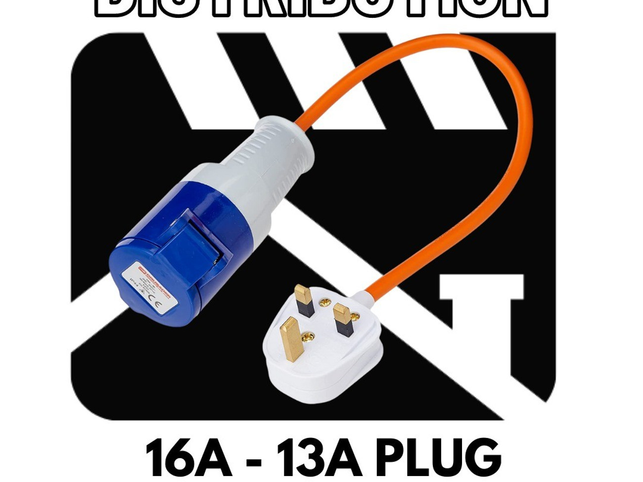 This 16A to 13A cable adapter allows you to connect lights needing 16A cables to standard plugs in households.