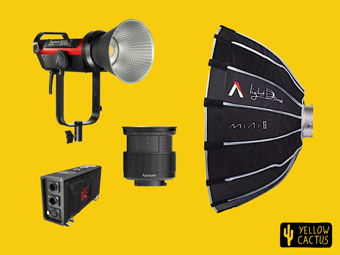 Aputure 300D Mark II Full Kit with Light Dome / Softbox and Fresnel 2X with BarnDoor