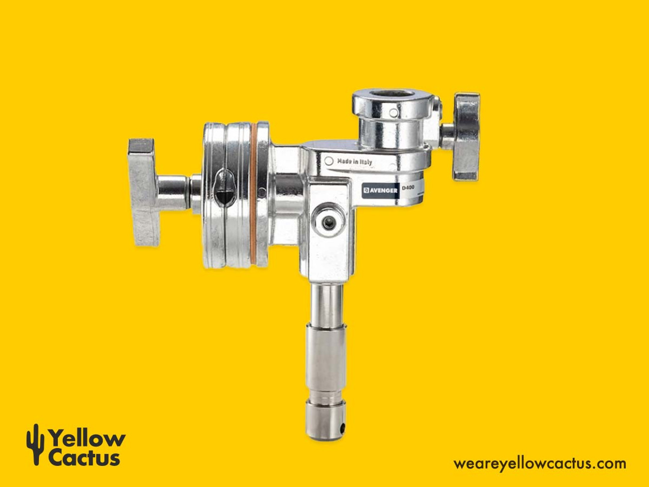 The D400 Jumbo Grip Head looks like the top of a traditional overhead stand. Commonly referred to as a lollipop this accessory converts combo and universal head stands with a standard 28 mm/1 1/8 inch receiver to an overhead style stand. The D400 has a 28 mm pin that mounts into a 28 mm receiver, a 4 1/2 inch/10 mm