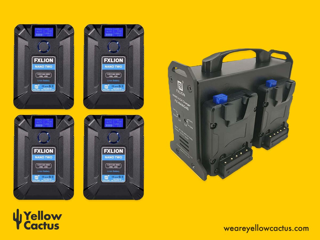 A small and compact kit of 4 Nano Two batteries with Nano 4s charger all in a soft case. Great for travel. 14.8V 98Wh NANO TWO V-Mount Battery with D-Tap output, USB A Output, USB C Output/Input and Micro USB Input