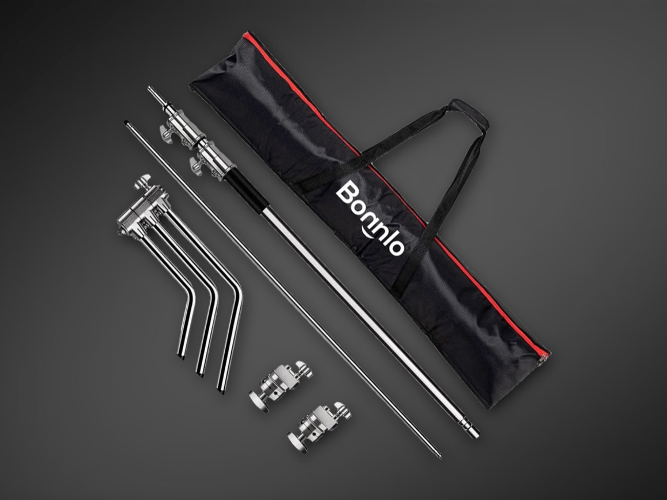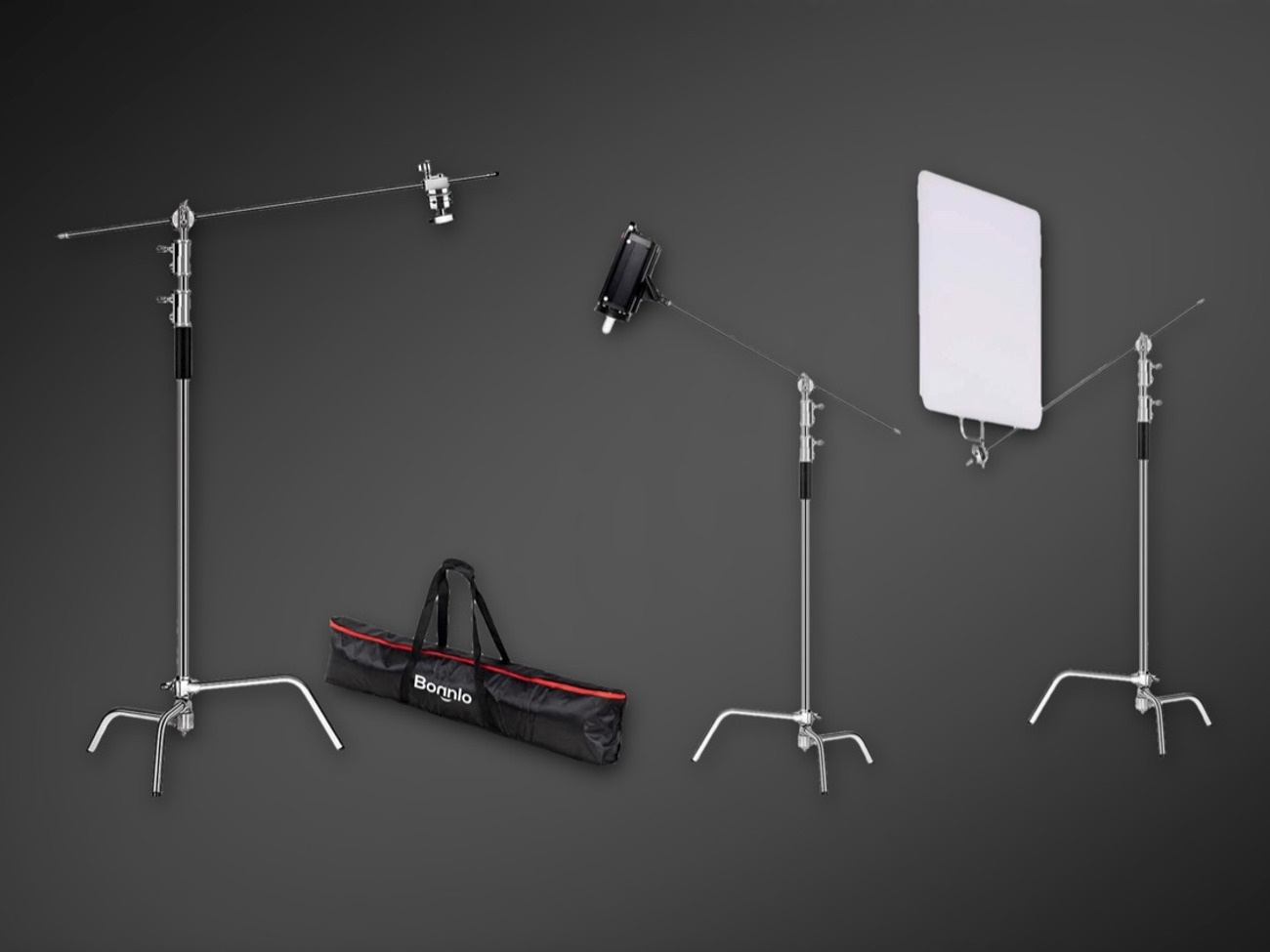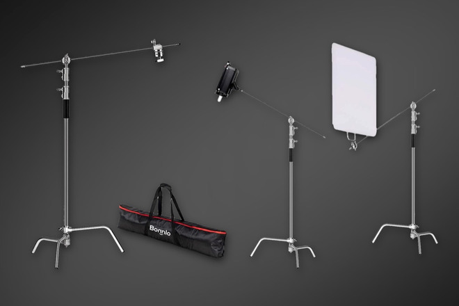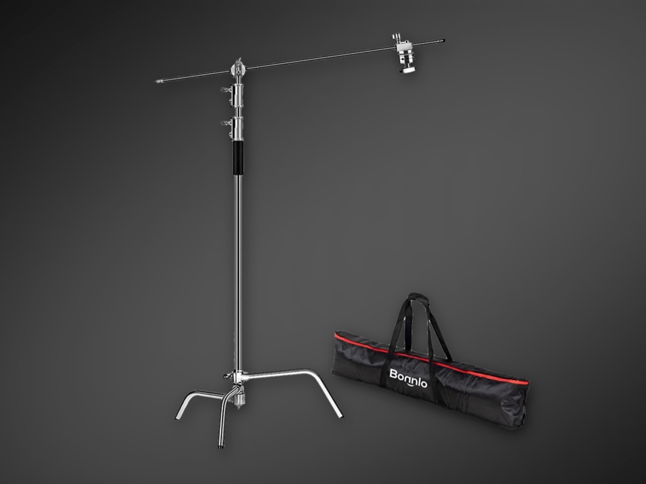 Bonnlo Pro Heavy Duty C-Stand with Hold Arm, Grip Head and Upgraded Carry Bag, 10 feet/3 meters Adjustable Stainless Steel Light Stand for Video Reflector, Monolight and Other Photographic Equipment.