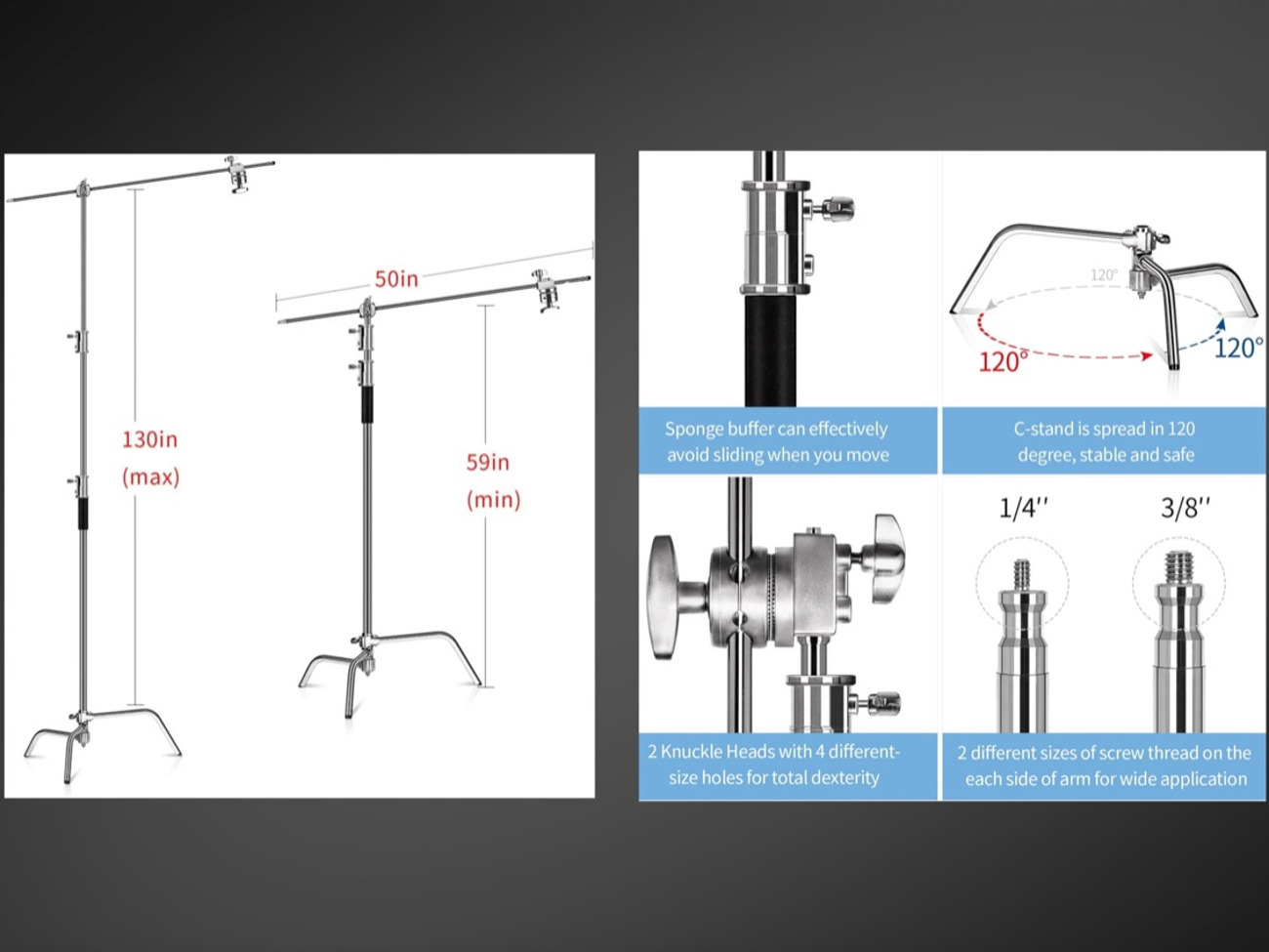 Pro Heavy Duty C-Stand with Hold Arm, Grip Head & Carry Bag