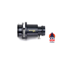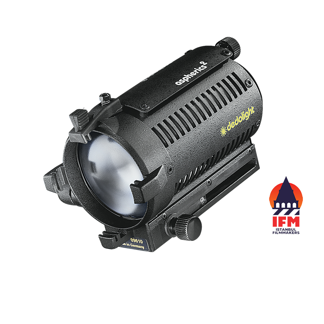The optical system of the Dedolight surpasses the traditional concept of studio lights with Fresnel lenses. The Dedolight optical system employs two lenses, neither of which is a Fresnel. The second lens pre-collects the light, directing it to the front lens, minimizing light loss. This produces focusing range and light efficiency, especially in the spot position.