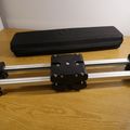 Extendable camera slider that allows unique dolly-type movement. Suitable for all DSLR-type cameras, but also useable with heavier cameras such as Canon C200.