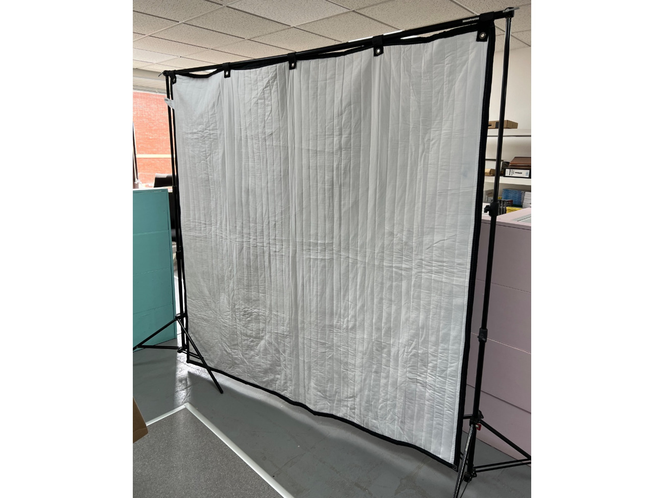 The blanket is quick to put up, with strong velcro straps that grip on to the cross-pole of the sturdy Manfrotto frame.