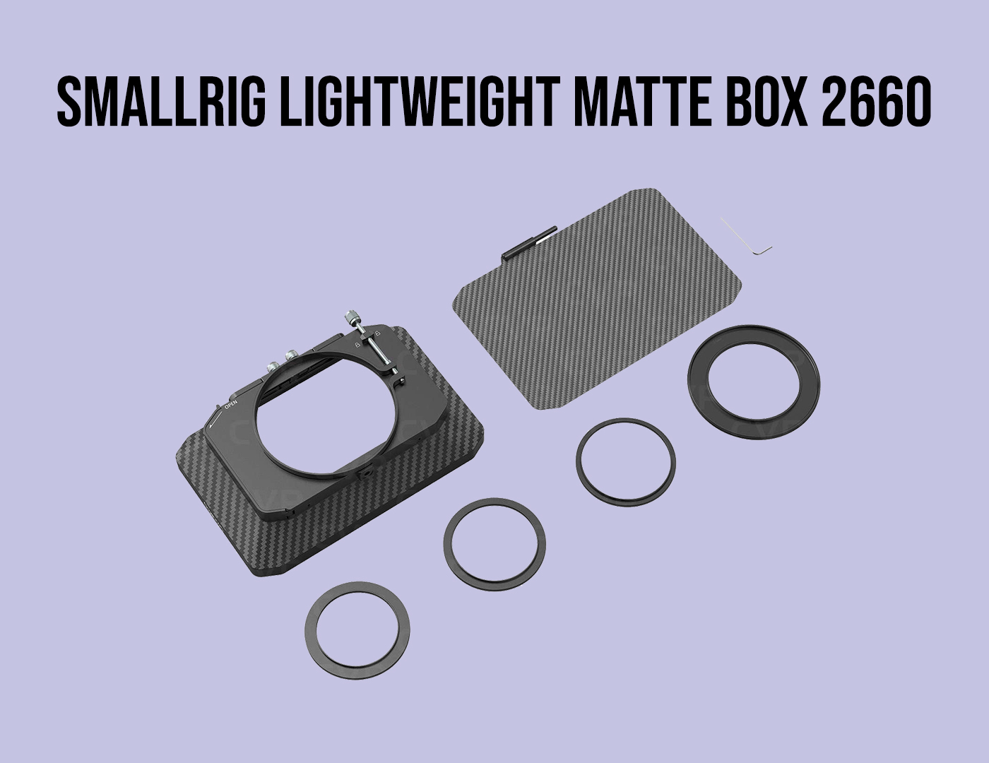 SmallRig Lightweight Matte Box 2660 is designed to block the sun or other light source in order to prevent glare and lens flare, with interchangeable mounting systems that suit cinema or DSLR lenses. The matte box comes with a 114mm clamp that allows you to mount it directly onto a 114mm cine lens, and the included 67-114mm, 72-114mm, 77-114mm, 82-114mm threaded adapter rings allow you to use the matte box with lenses of different diameters.