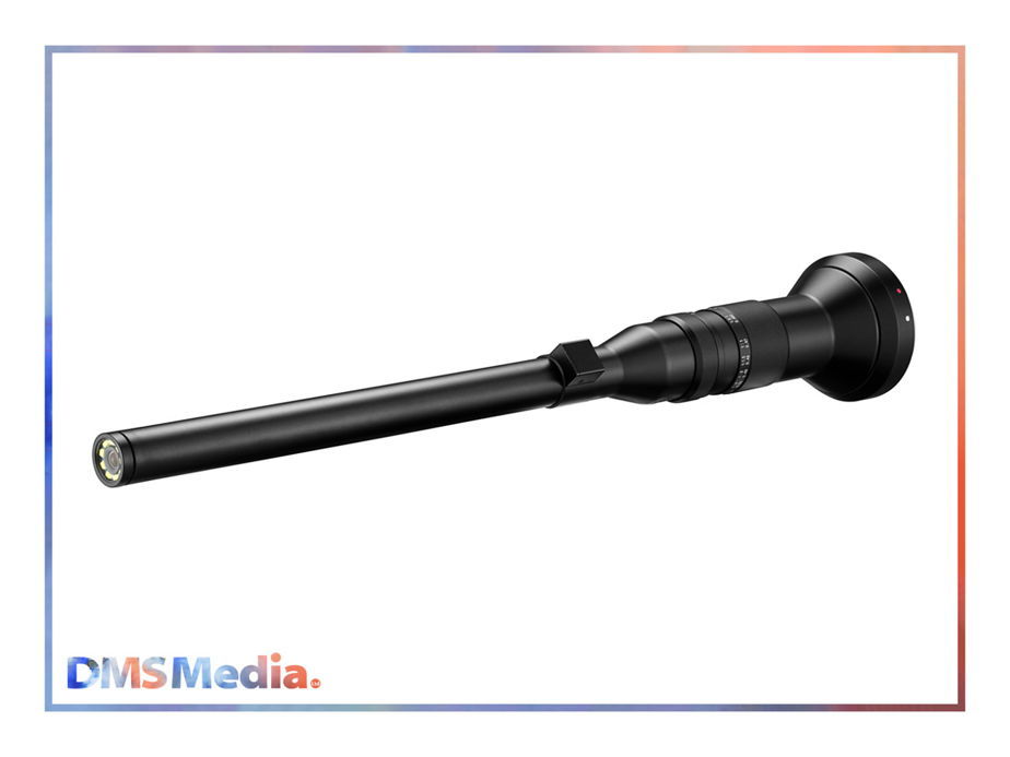 This full-frame macro probe lens has a long thin design so that it can be placed into small spaces to get very close up images of small hard to reach objects. There is also an LED ring light built into the front to illuminate dark spaces.