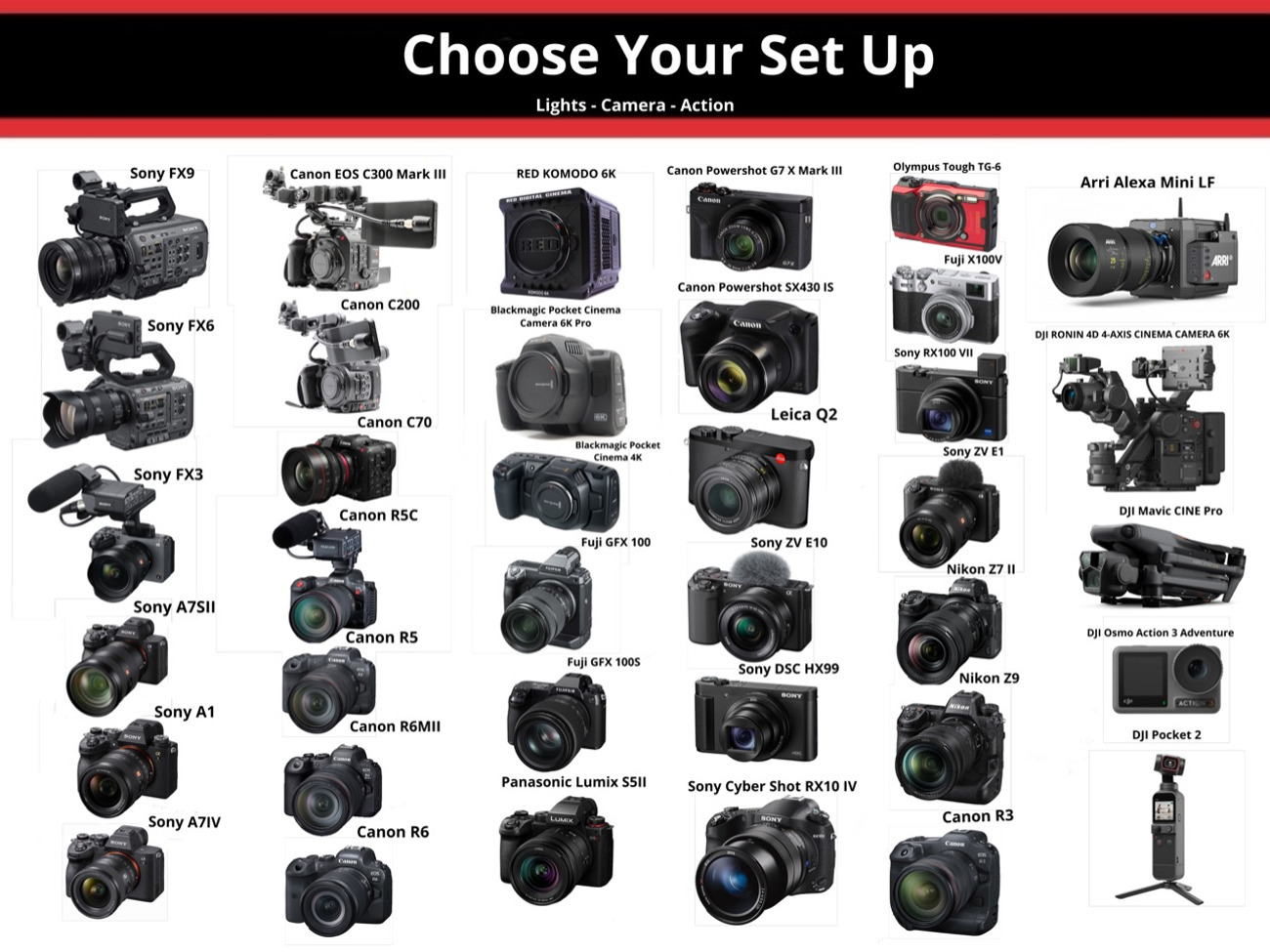 ▪️Add Lenses, Camera’s, Audio equipment and Lighting