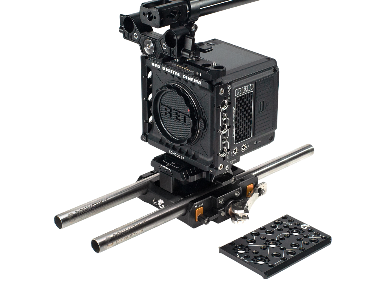 RED KOMODO Accessory Kit (Pro, V-Mount) is an accessory kit for RED® KOMODO™ that includes the LW 15mm Baseplate, Complete Top Mount Kit, Battery Slide Pro V-Mount, and 2x 15mm Rods (12”).