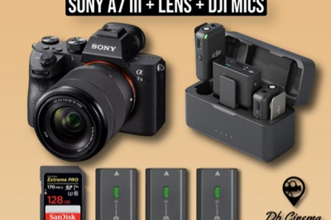 This mighty camera combo gives you the Sony a7 iii 4k camera plus 28-70mm Lens and the Dji mic set for wireless audio solution with internal recording as good as rode.
