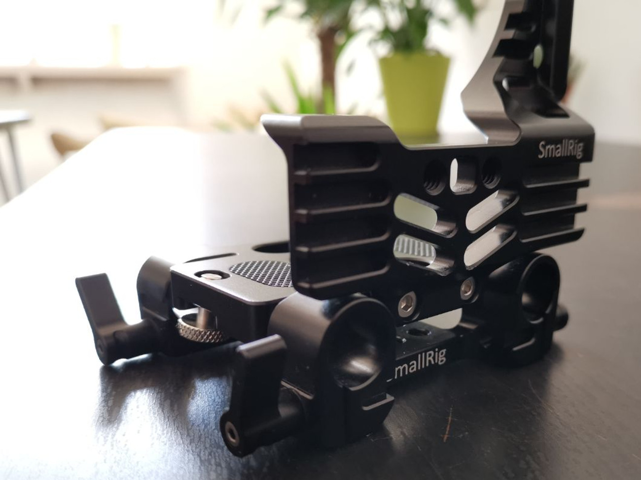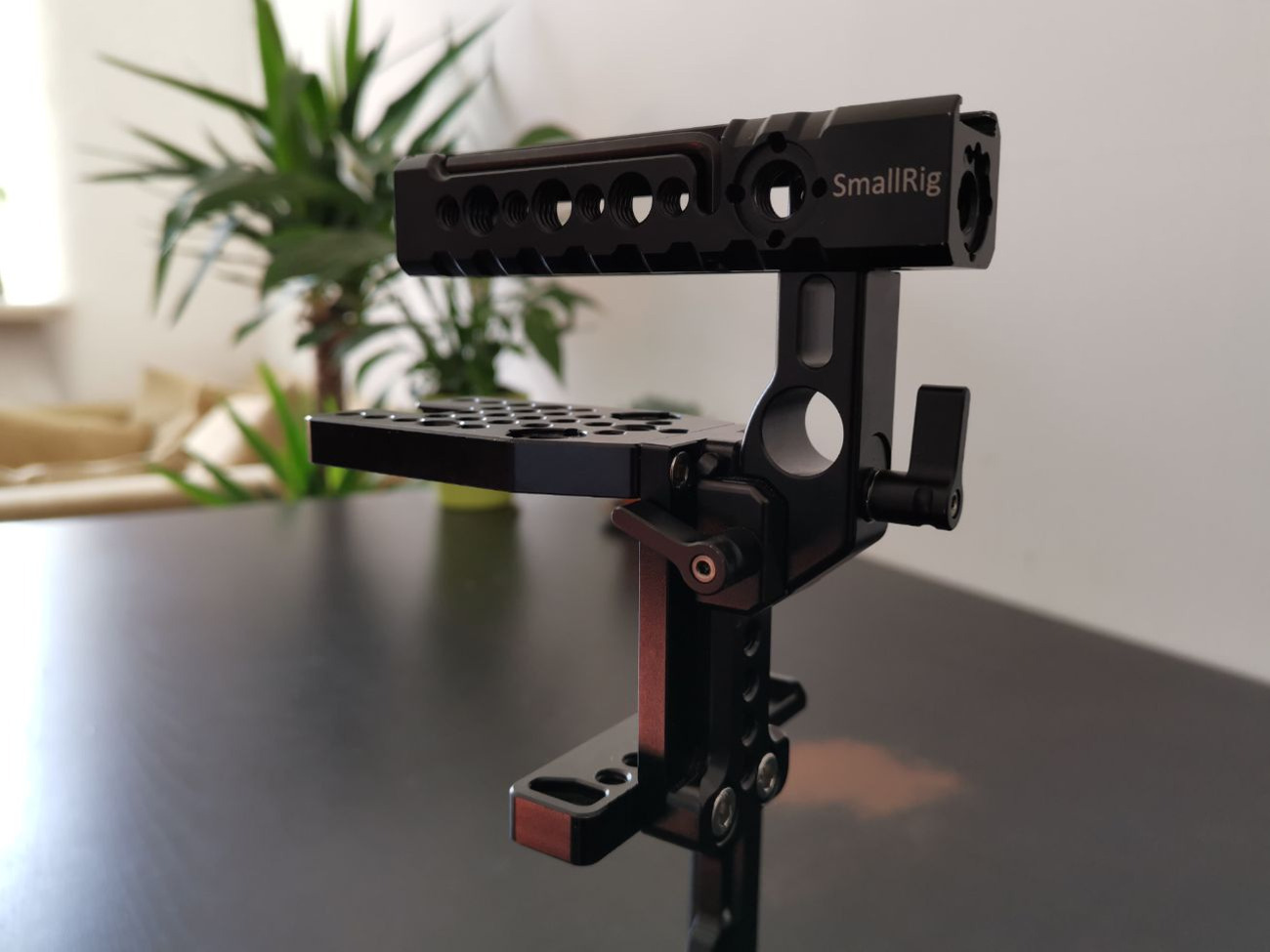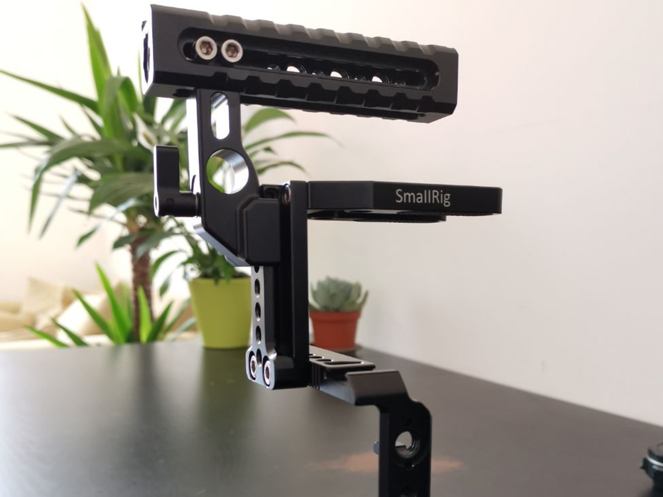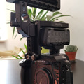 This SmallRig cage allows you to add accessories such as microphones, monitors or lights via a selection of cold-shoe and screw mounts, and also rods in the base, which can securely attach to a tripod. The adjustable top handle can also help with handheld or low angle shooting.