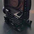 Cage system for Panasonic Lumix GH5 or GH5S camera, designed for use with the GH5/S battery grip (included) and the XLR1 audio adaptor (not included). Gives security to your camera, expansion options and hours more filming, using 2 batteries at once.