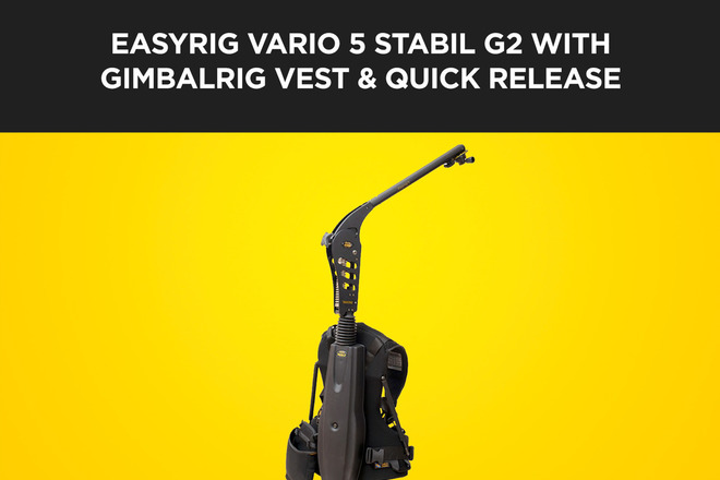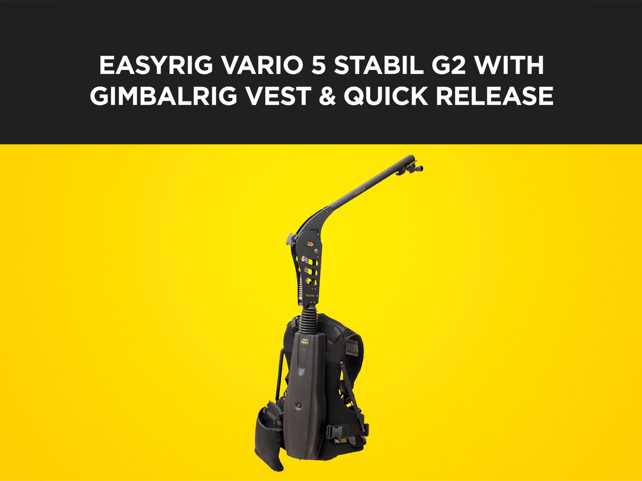 - EasyRig Vario 5 with Stabil G2 arm and standard size GimbalRig vest (with EasyLock) and quick release