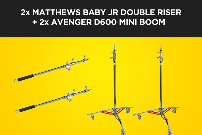 - 2 x Avenger d600 boom (more heavy duty than traditional c-stand arms)