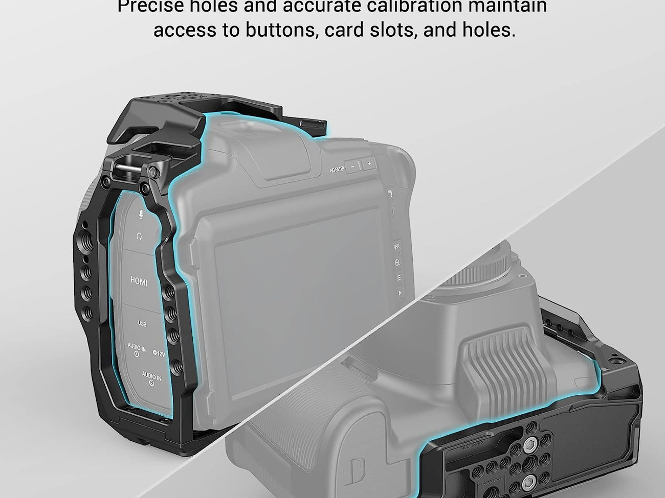 Dedicated for 6K Pro / 6K G2 - SmallRig Half Cage 3665 provides accessory mounting points to facilitate shooting. This lightweight and strong aluminum, stainless steel, and silicone gel cage is designed with ergonomics.